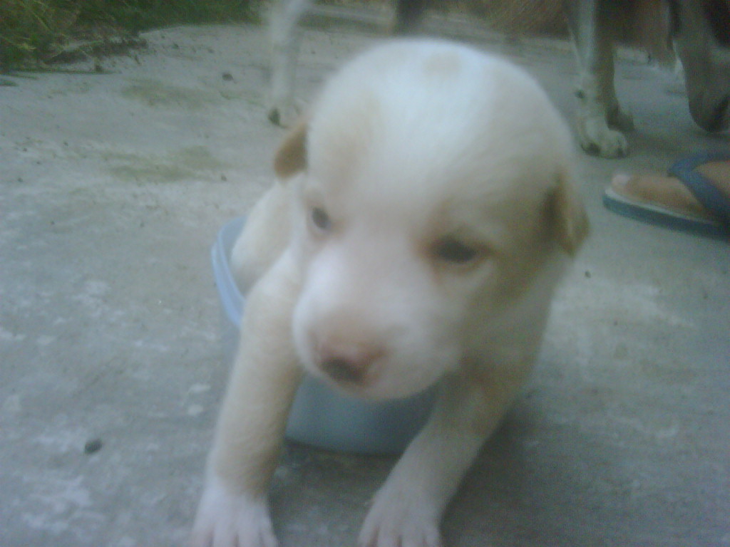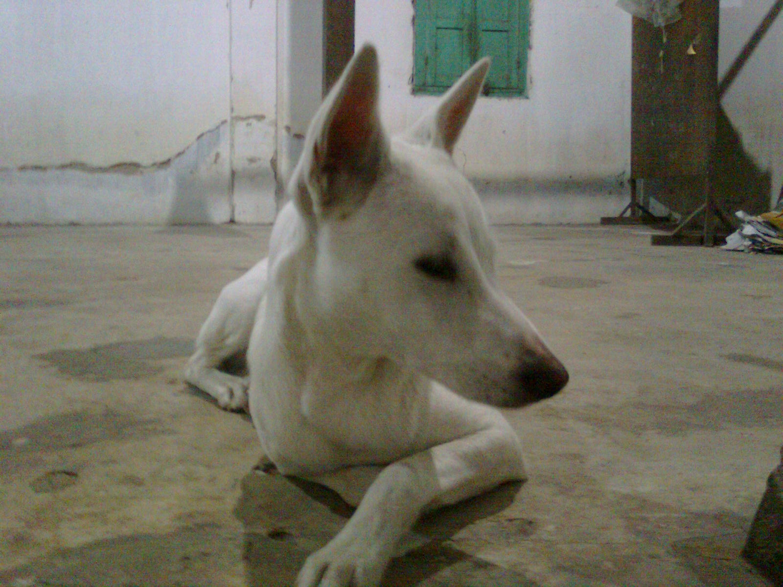 Anjing ketiga namanya putih. Tapi sayangnya si putih ini jorok dan kutuan, jadinya aku buang, hahahahaha…
