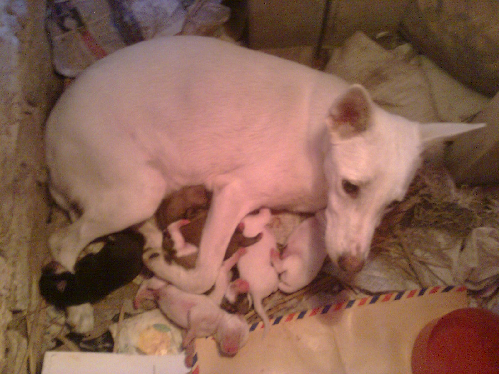 Ini genting pas kelahiran pertamanya. Tepat di hari sumpah pemuda 28 oktober 2009. Hasil perkawinannya sama Molly (anjing pakdeku). Genting ini pinter banget. Dia nyiapin sendiri tempat dia nglahirin, melahirkan sendiri tanpa bantuanku sama sekali, menyusui. Pokoknya dia bener2 ibu no 1 di seluruh dunia anjing. Anaknya ada 6 ekor, 3 betina, 3 jantan.