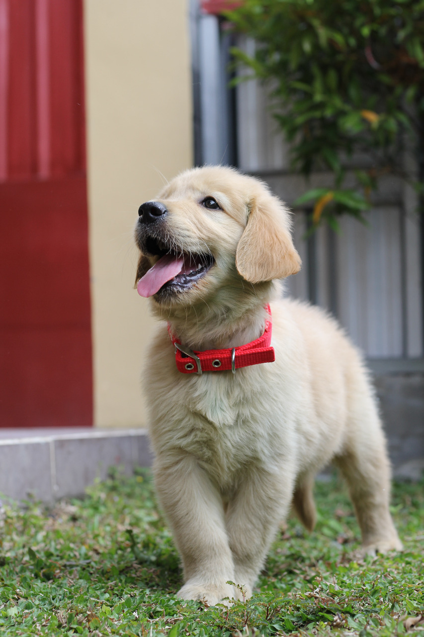 Sampai sebulan lalu tiba-tiba kangeeen banget merawat anak kaki empat lagi. Alasannya ke om sih karena sering ditinggal di rumah sendirian, kalo ada puppy kan gak sepi (bisa aja kan alesannya). Lalu mulai iseng browsing puppy golden, dan kebetulan kog ya langsung nemu aja. Trus dengan akting “lagi manja” minta om nganterin ke tempat si puppy itu, waktu itu sih bilangnya cuma liat-liat aja.. padahal mupeng. Dan… singkat cerita si om setuju punya puppy, tentunya dengan persetujuan ibu juga selaku Nyonya Besar, ehehehe… Bahagianya THRnya dikasih puppy. Makasih om, makasih Bu Nana…